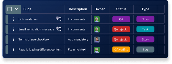 Avoid the guesswork and fix issues fast. Detect, report, and assign bugs to teammates in one place.
