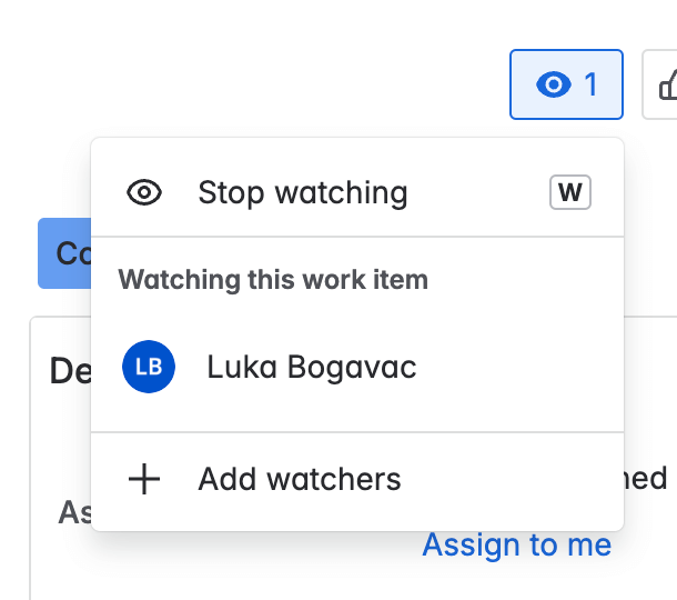 Still, as far as other collaboration features go, I liked the “watch work item” option. Basically, every member who watches a task gets notified of the changes — keeping you from having to add every one of them as assignees so that they’d get notified.