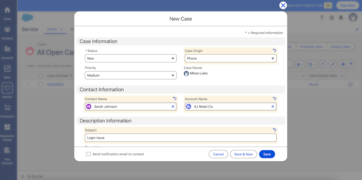 - Automated case assignment — Save time by automatically assigning cases to the right agent based on predefined rules (e.g., location, urgency, product type).