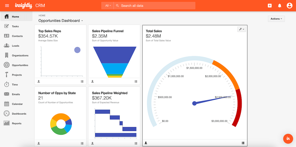 What’s more, this platform provides an API that allows businesses to build custom connections with other tools and internal systems. This makes Insightly CRM highly adaptable for unique business needs.
