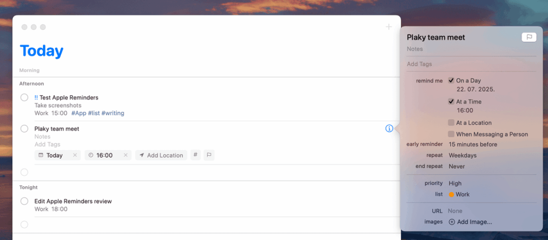 Besides being a great reminder tool, Apple Reminders also serves as a checklist with a simplistic design. Personally, I use Reminders for work tasks as they help me organize my work transparently by adding all necessary task details, such as: