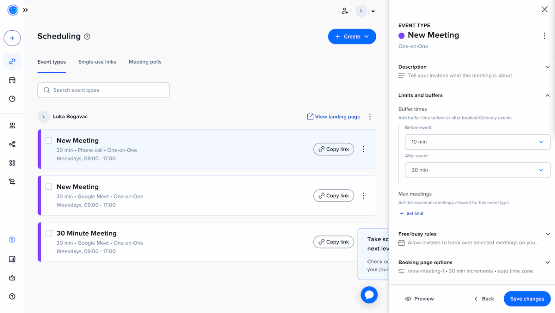 | Calendly | Scheduling business meetings | ✔ | ✔ | $10/user/month |