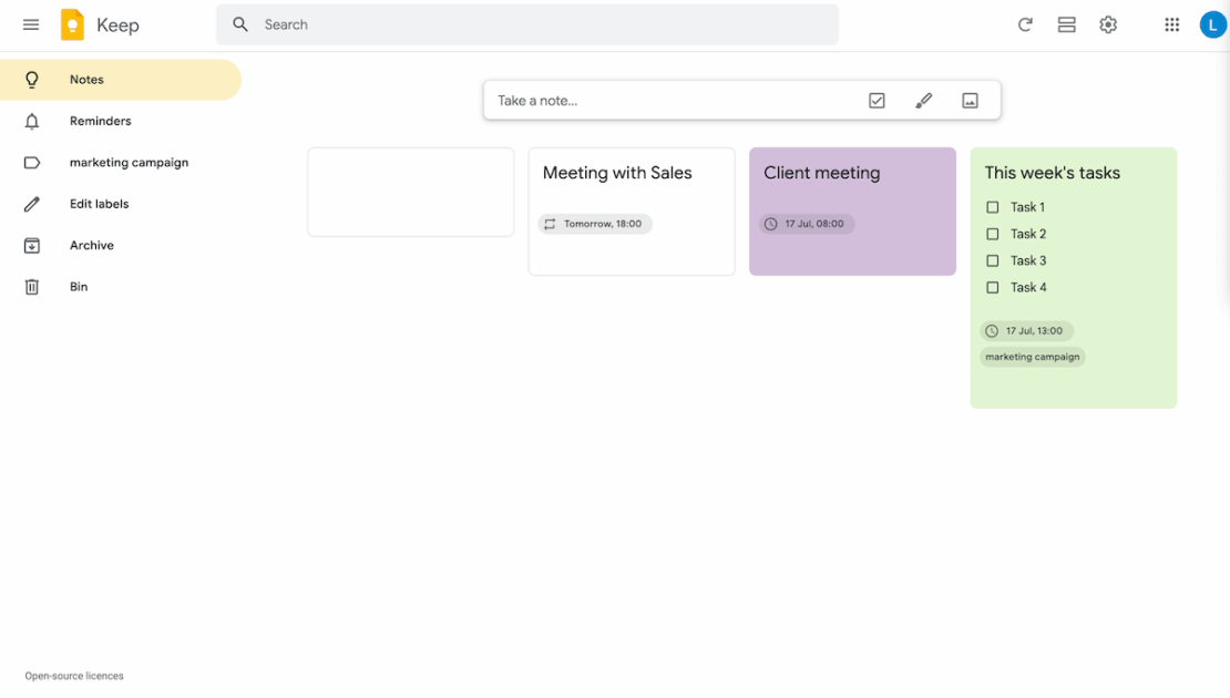 | Google Keep | Keeping track of day-to-day responsibilities | ✔ | n/a | n/a |