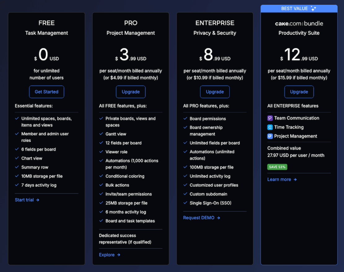 - Save money — with a generous free plan that gives you unlimited users, items, and boards, as well as affordable paid plans,