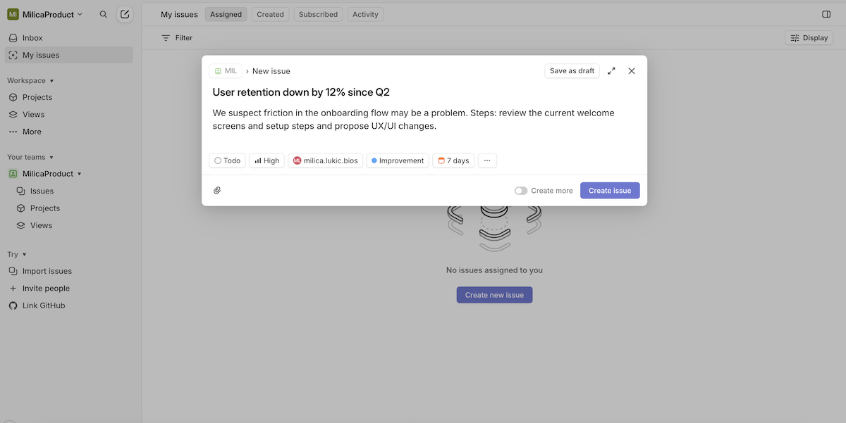 When it comes to issue tracking, I found this to be Linear’s highlight thanks to: