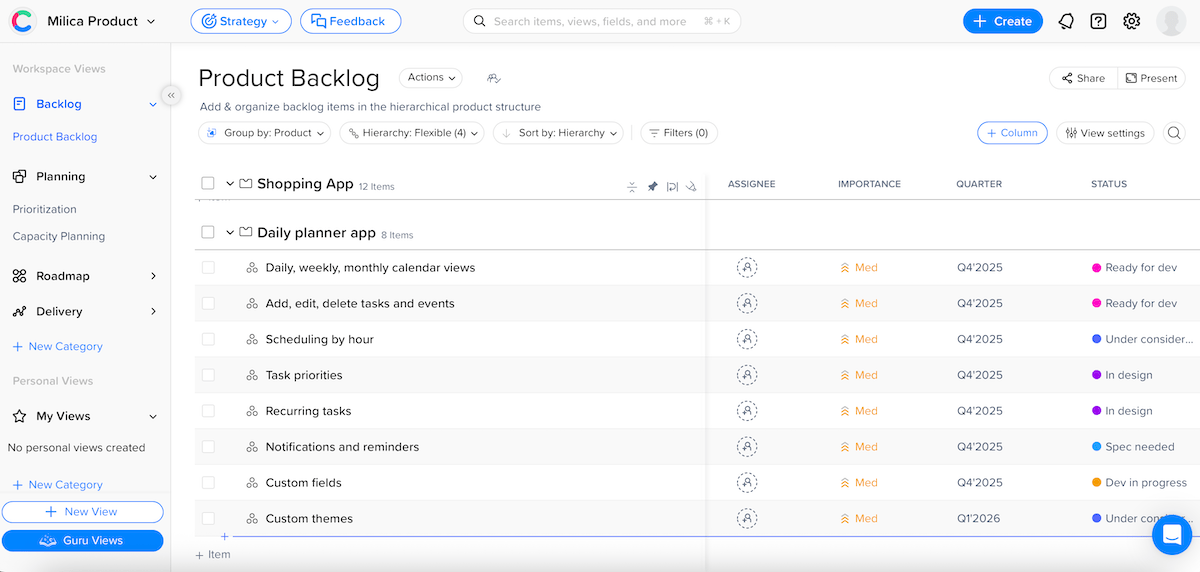 The right pick depends on your team size and workflow, but there are core features that any effective product management tool should offer, such as: