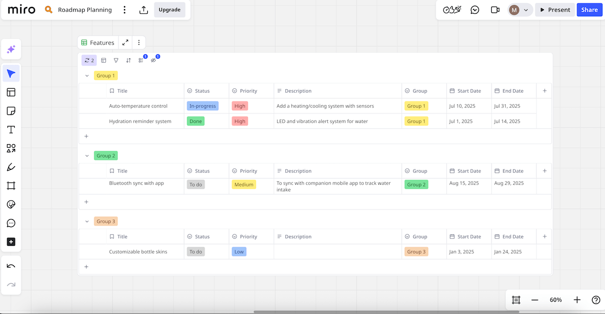 And, admittedly, while Miro is great for ideation, it isn’t optimized for execution. So, keep your product boards organized and use Miro in tandem with execution tools to avoid chaos.