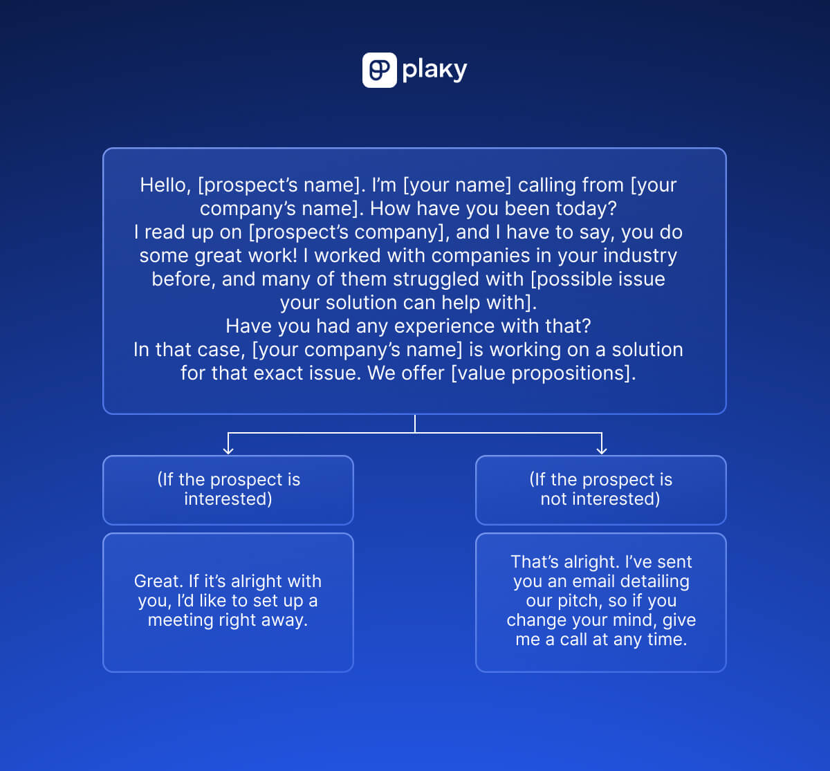 This cold calling script is applicable to any kind of solution you provide. There is room to tweak it a bit to fit your niche and business’s needs, but it’s a great starting point for any cold call.