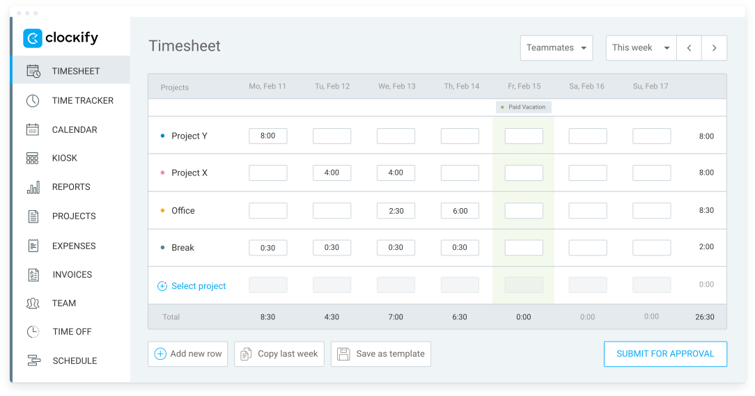 For HR, the most relevant Clockify features are: