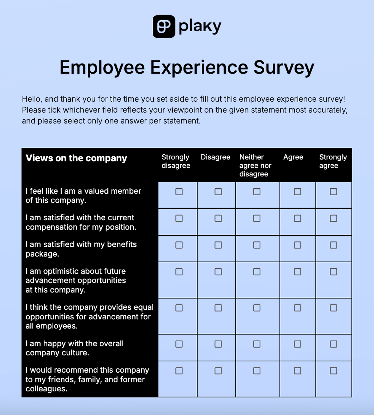 Don’t know where to start? Make use of our free employee experience survey template!