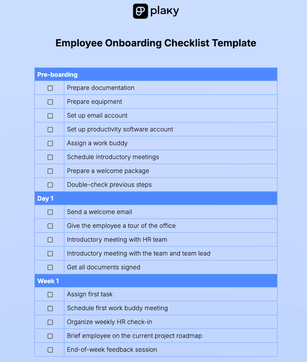 What’s more, Plaky offers a pre-made employee onboarding template that helps you automate repetitive tasks and save precious time.