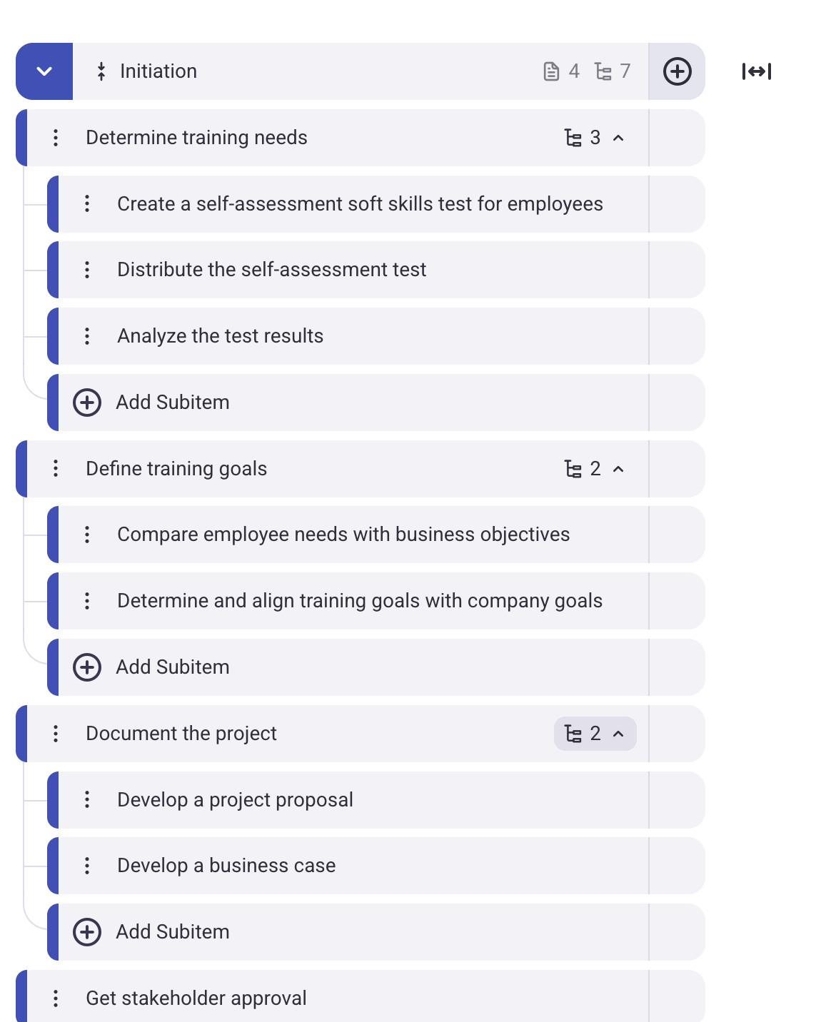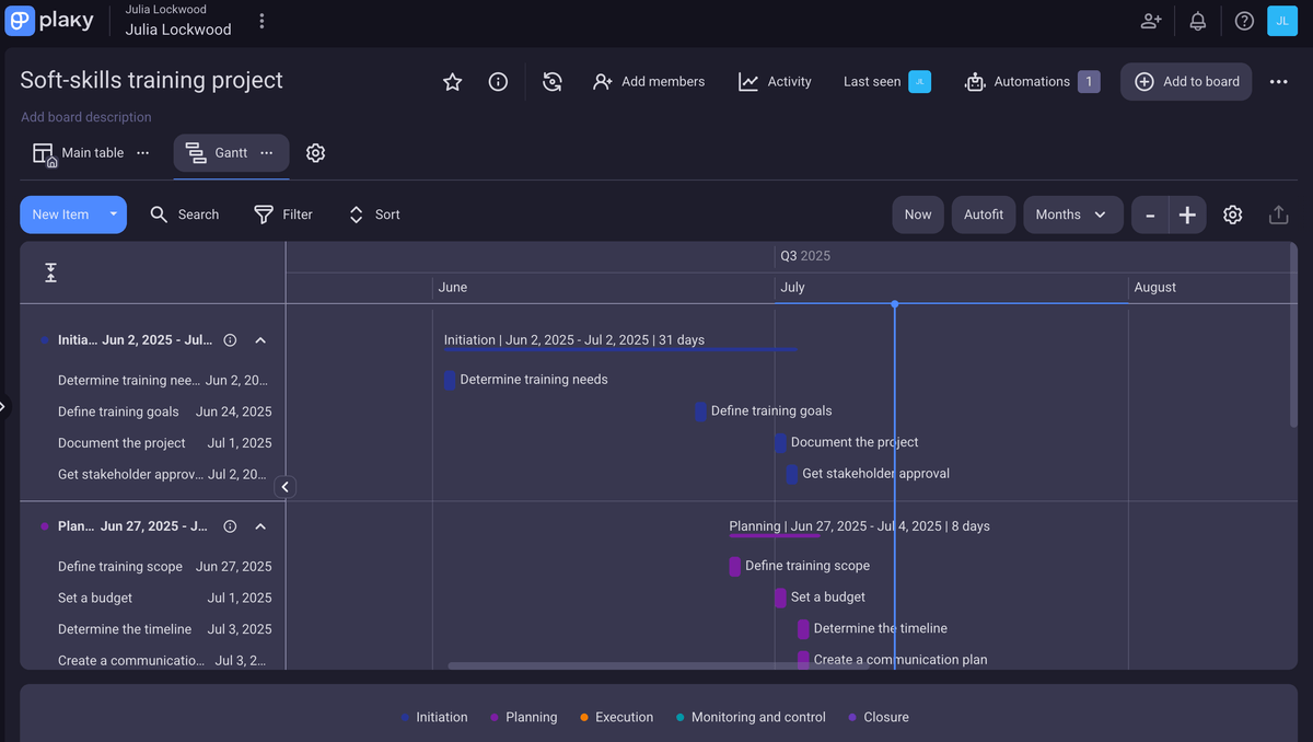 Let’s take a soft-skills training program as an example of an HR project and develop a project plan using our tool, Plaky.