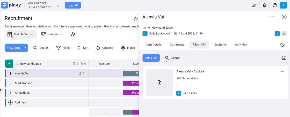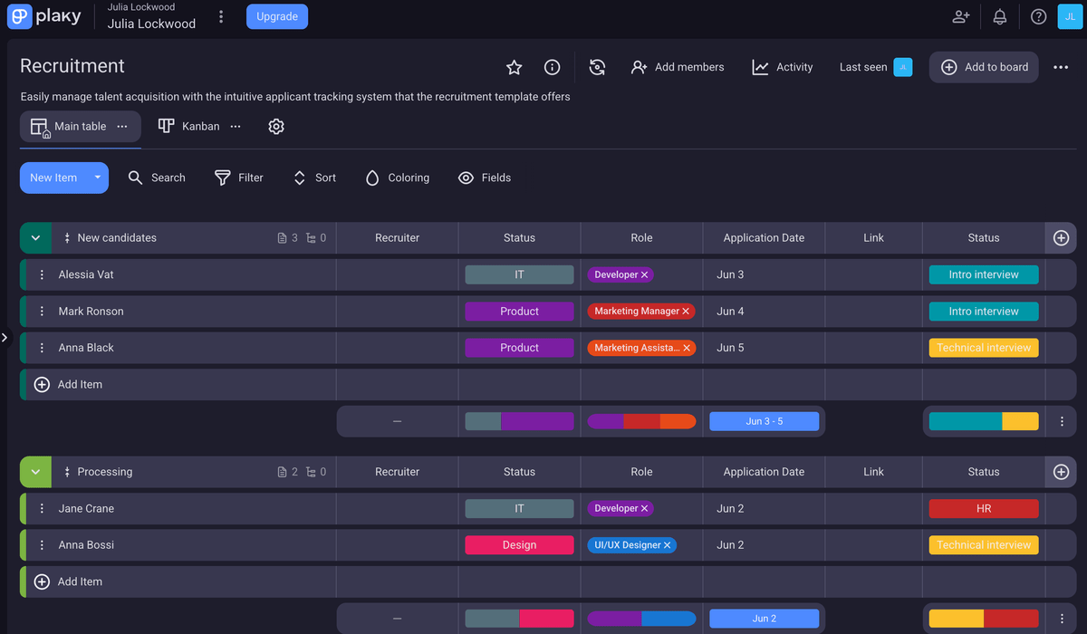 Luckily, Plaky offers an easy-to-use recruitment template for: