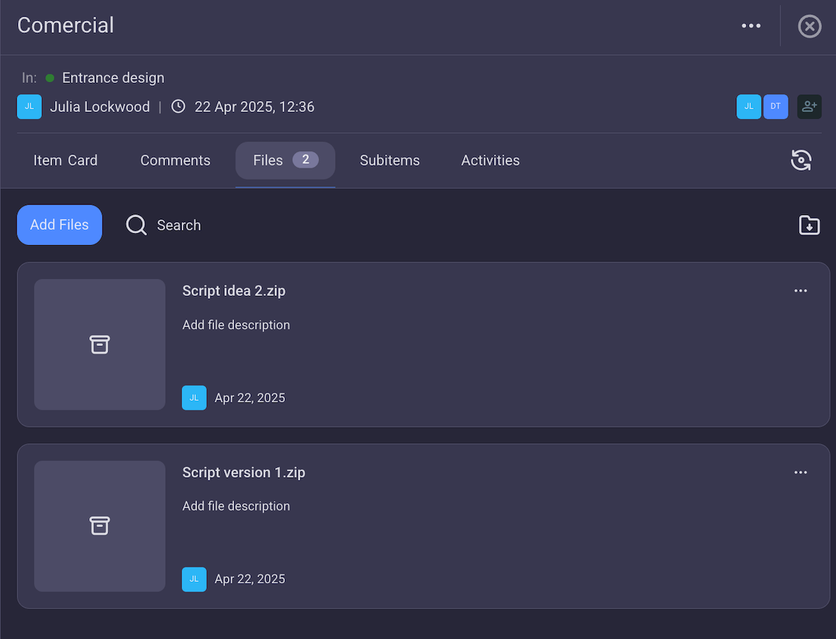 - Add files to tasks to create a centralized document-sharing hub,