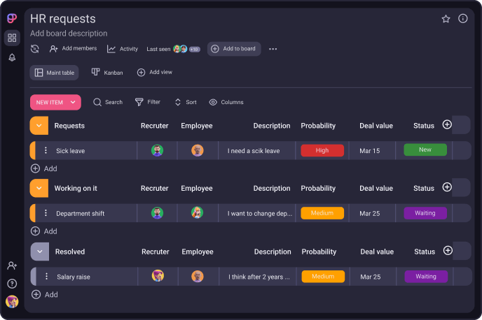 Desde el caos de solicitudes hasta una sola vista centralizada. Simplifica tu proceso de contratación con la gestión centralizada de proyectos de RRHH y organiza la información de empleados, los archivos y la comunicación en un solo lugar.