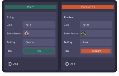 Organiza los grupos de tu tablero en fases y sigue todas las actividades relacionadas con el cliente en un lugar compartido.