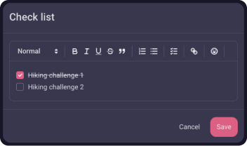 La tarea es donde centralizas toda la información relevante sobre tu objetivo. Añade una descripción adecuada, crea una estación de documentos, haz una lista de verificación de pasos que necesitas seguir para realizar tu objetivo.