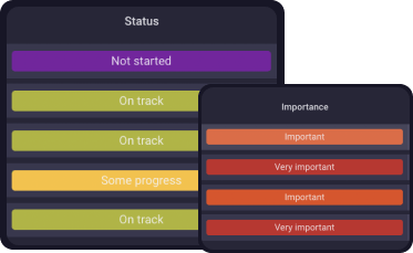 Sé exactamente dónde te encuentras en cuanto a tus objetivos en cualquier momento con un campo de estado personalizable. Los campos en Plaky pueden clasificar tus tareas en varias maneras.