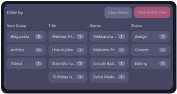 Con un grupo de tareas, puedes organizar tu contenido como un período de tiempo y planificar publicaciones de la manera más clara y simple. Tendrás una vista de lo que es urgente y de lo que está planeado para el mes siguiente simplemente echando un vistazo a tu tablero.
