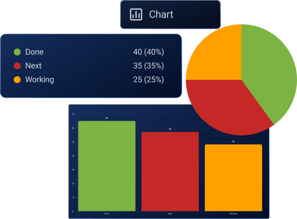 The Chart View is your reliable tool for deep data analysis. Easily visualize team performance, task completion, how your projects are progressing, and many other insights.