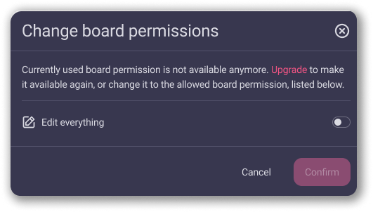 When a Workspace is downgraded to a lower subscription type, a conflict situation related to the number of fields on a Board will occur.