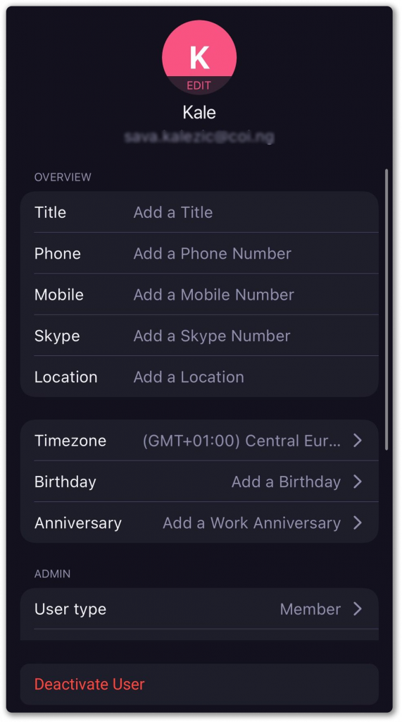 - Tap on Deactivate user in the confirmation modal to complete the action