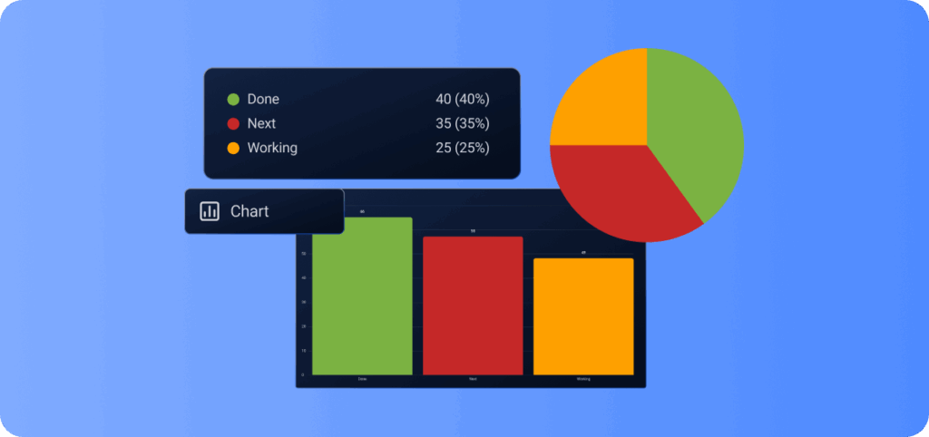 Diagrammansicht – Deine Aufgaben werden als klare, interaktive Kreis- und Balkendiagramme für tiefere Einblicke angezeigt