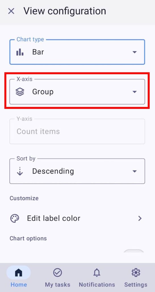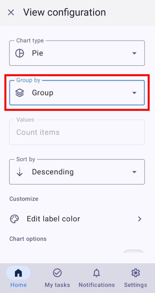 - Toca Configuración de vista de tablero