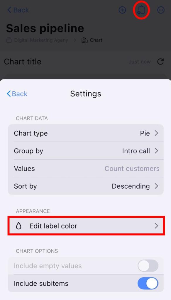 Si cambias el color de la etiqueta con esta opción, solo afectará a la Vista de gráfico.