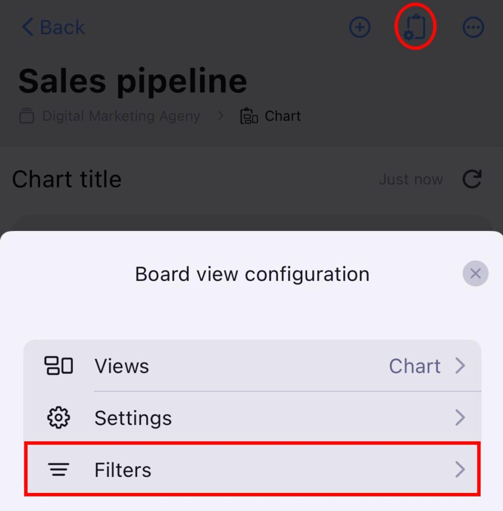 - Toca la Configuración de vista de tablero en la esquina superior derecha