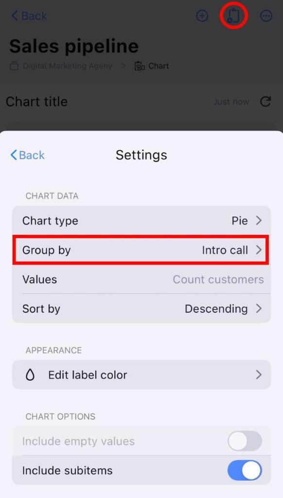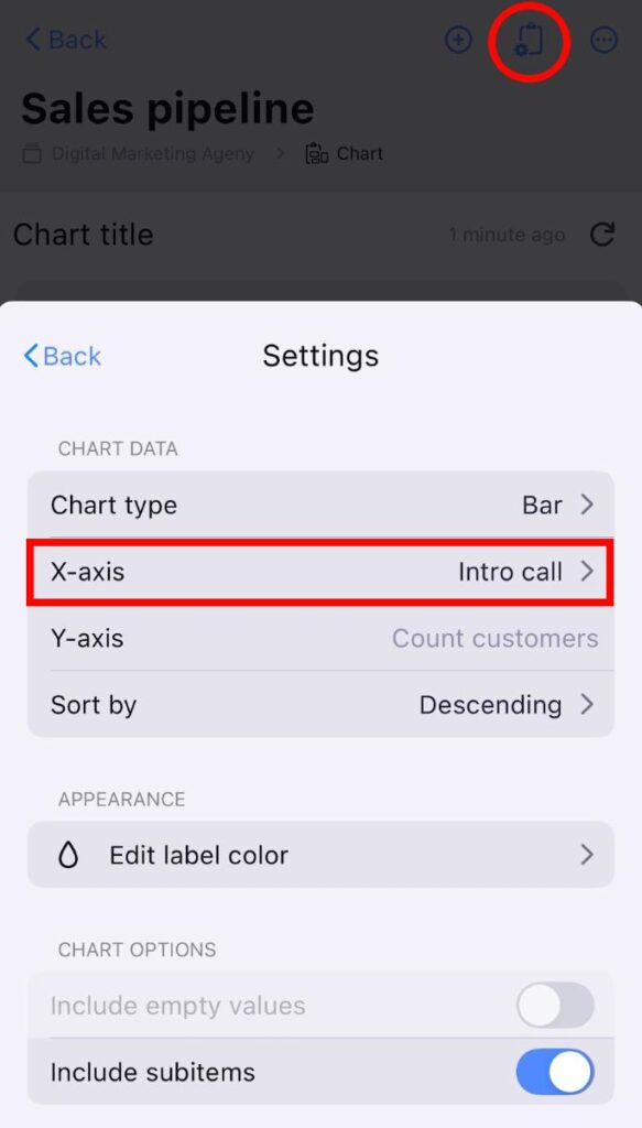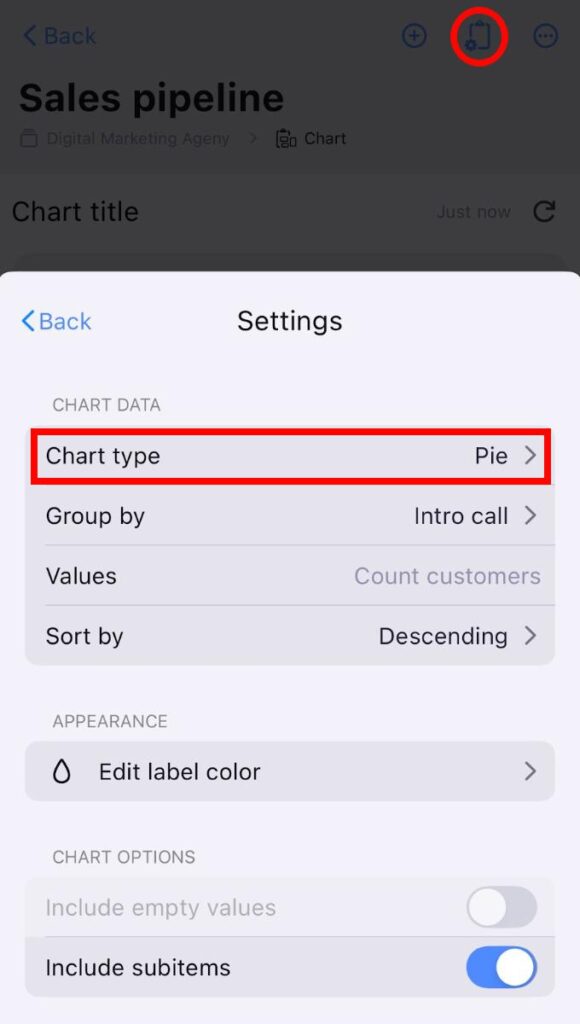 - Toca el menú desplegable del Tipo de gráfico