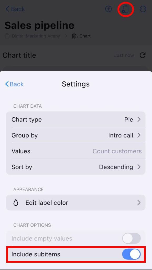 - Toggle the Include subitems button
