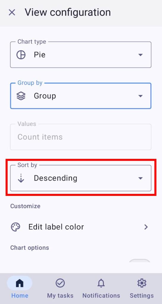 Vista de gráfico te permite visualizar tus proyectos y tareas utilizando gráficos interactivos. Con esta vista, puedes agrupar tareas por campos específicos y ver cómo se comparan. Por ejemplo, puedes utilizar gráficos para agrupar tareas por el estado de finalización, proporcionándote una imágen clara de cuántas tareas están etiquetadas como: para hacer, en progreso o hecho.