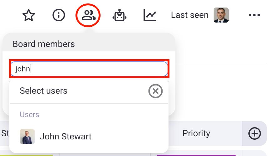 Once you have created a Board, you can add board members by clicking on the board members icon and then typing their names into the field.
