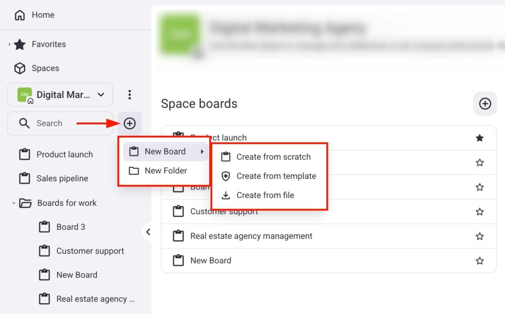 Once you select a Space, you can see all the Boards located inside it. Boards are between a Space and an Item in the Plaky hierarchy, and they are used to organize Items.
