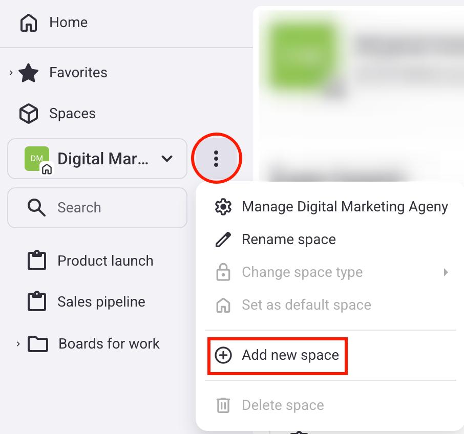 Additionally, you can create a new Space by clicking the three dots and then selecting Add New Space.