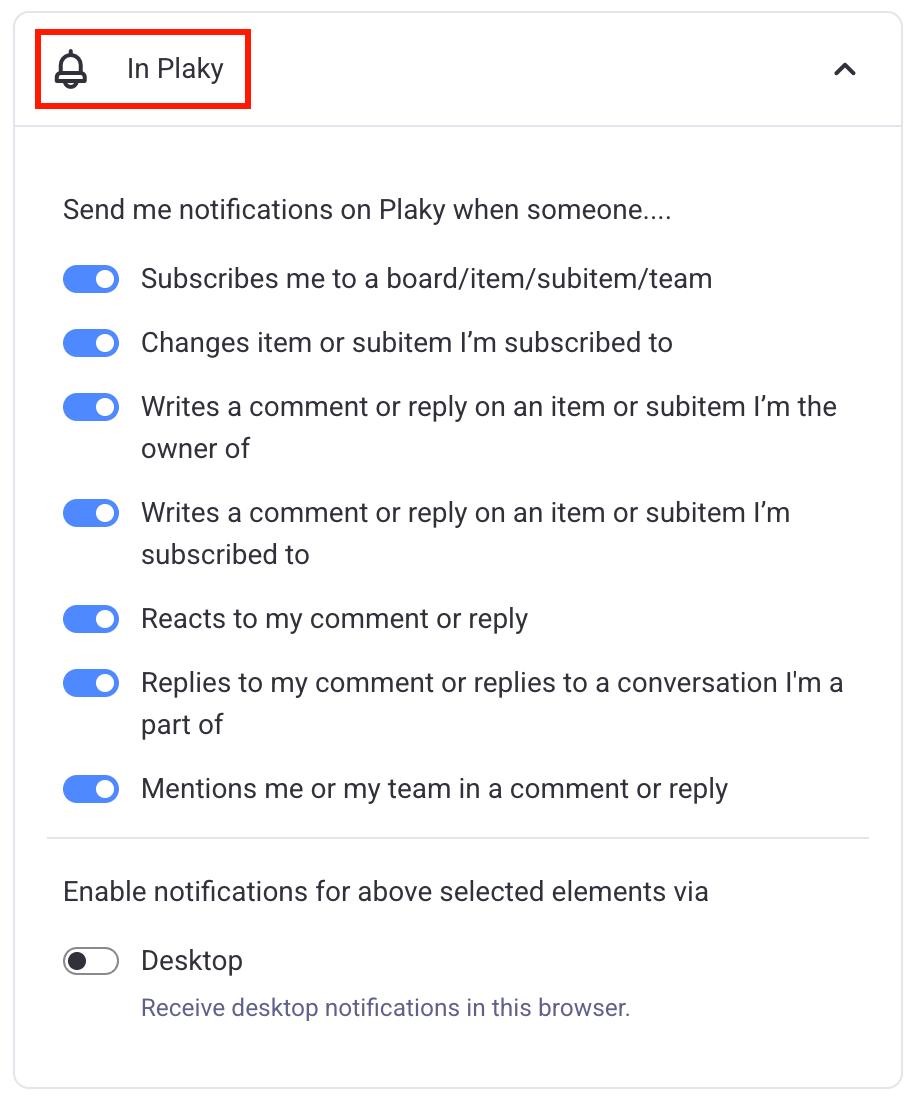 Plaky will send you notifications whenever something important happens to a task you are assigned to, and you can modify how you will receive these notifications.