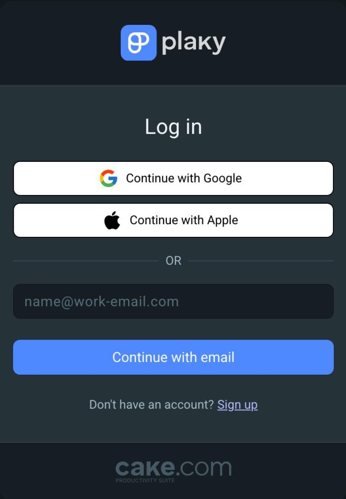 Plaky also allows you to log in using your Google or Apple account. To do this, follow these steps: