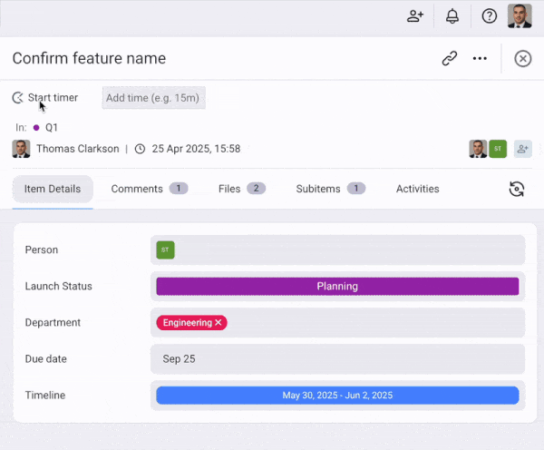 The Plaky-Clockify integration allows you to track time on your Items/Subitems directly from Plaky. This integration lets you create accurate time recordings for all your projects and tasks.