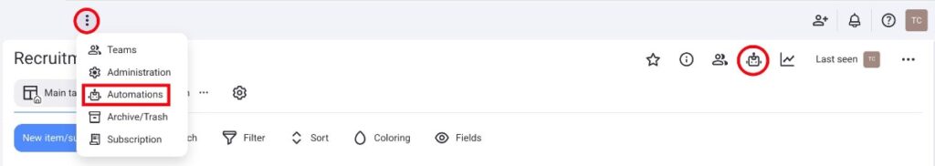 - Click on the Automation icon in the top right corner