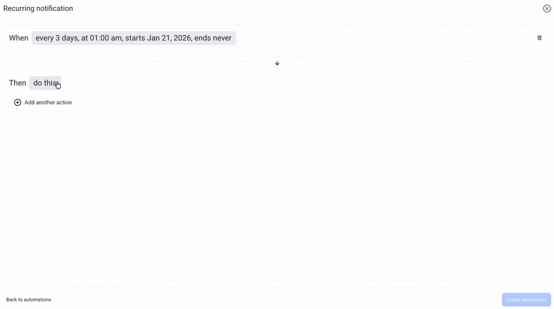 Once you have set the recurring trigger, you can proceed to set the recurring action. The recurring action will run whenever the trigger is activated.