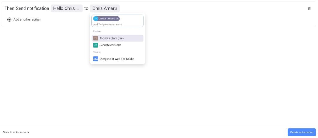 - Click on Create automation to complete the action