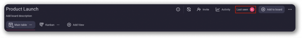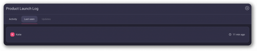 Click and open current Board Activity Log with Last Seen tab. You’ll see the name of the User that has last seen the Board and how long ago that happened.
