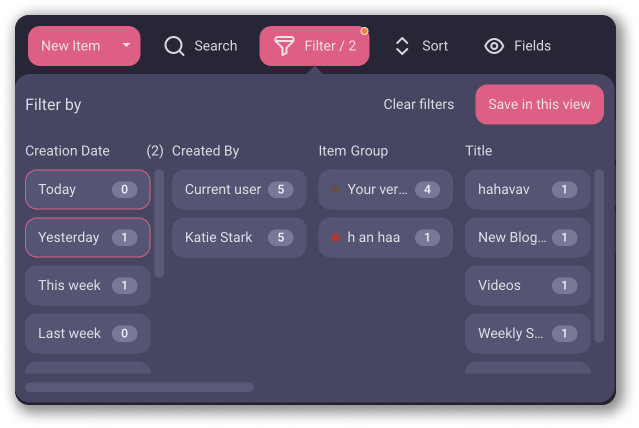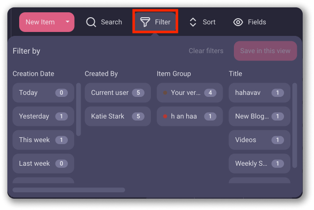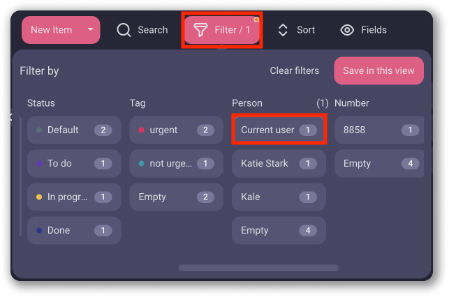 After you click Save in this view, Items will be filtered out by you as a user and you’ll see only those relevant to you. Also, every other Team Member that has access to that Board will be able to see Items assigned to them once they access that Board View.