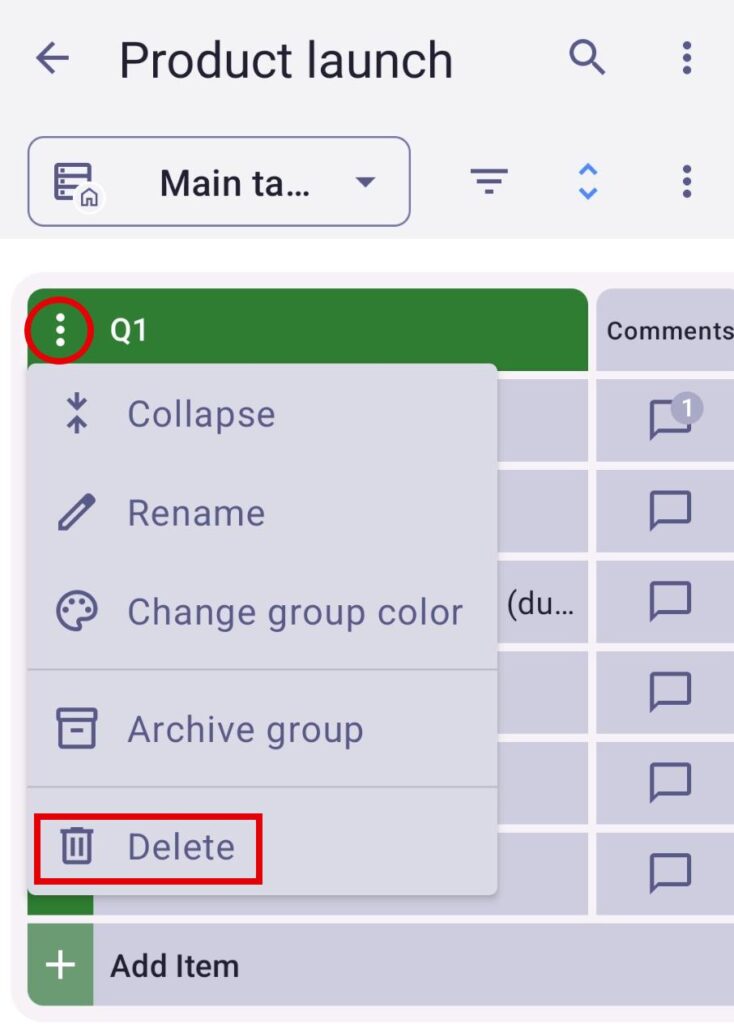 Deleting an Item group allows you to declutter and refine your project structure. To delete a group:
