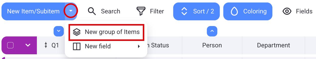 - Navigate to New Item/Subitem at the top left corner of the Board