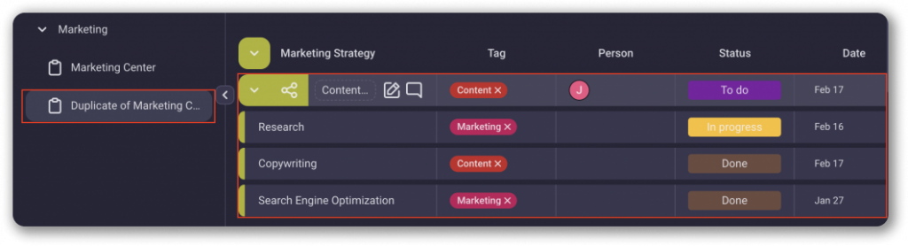 The Board with the duplicated structure will appear in the sidebar on the left.
