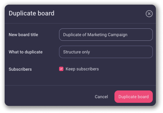- Check Keep subscribers box to copy the Members added to the Board