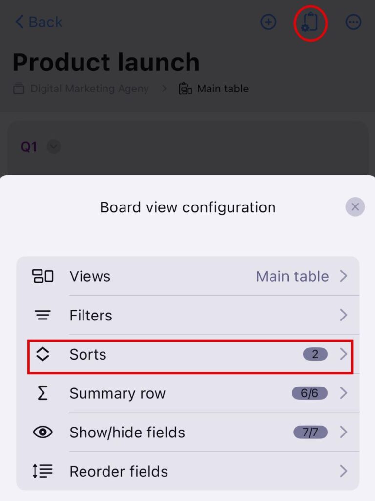 You can sort each Field according to some sort of criteria. This can help you better organize your Board and have a clearer overview of all the Items on the Board.