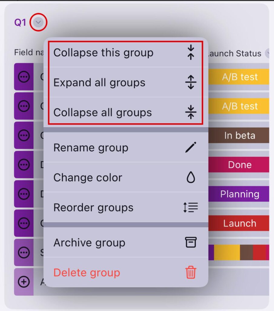 Streamline task management by expanding or collapsing groups on the board in Plaky.